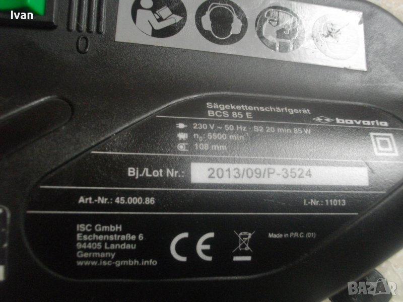 машина за заточване на вериги на режещи триони, модел на Ейнхел. Марка и модел - Einhell Bavaria BCS 85 E.