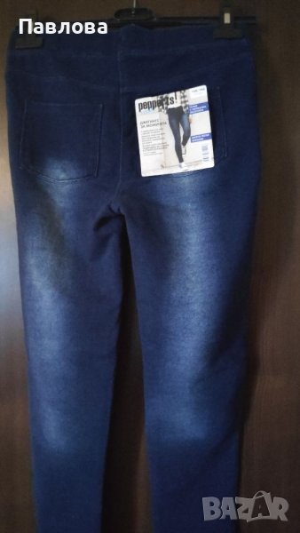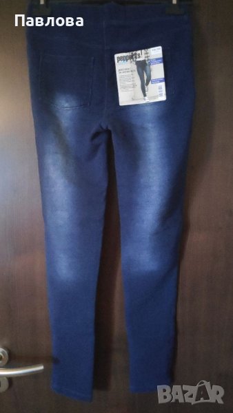 Дънките са от трикотажен плат, тип клин с ефект на коленете. Нови, с етикет. За ръст 158-164см.