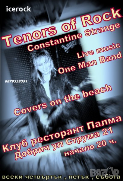Стилове изпълнение евъргрийн , блус , рок , диско , кънтри ...без чалга , фуннкция D.J . Разполагам със собствено осветление и озвучаване .Моят канал в You Tube - .https://www.youtube.com/channel/UCCShGKNWXajW9zt3ddCdMew
