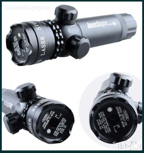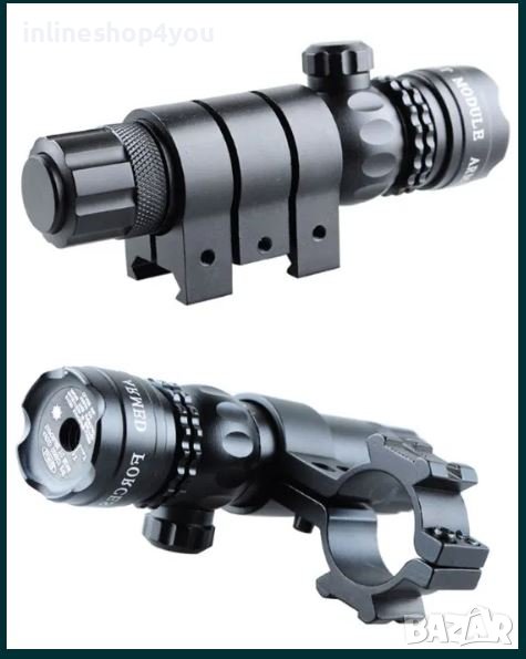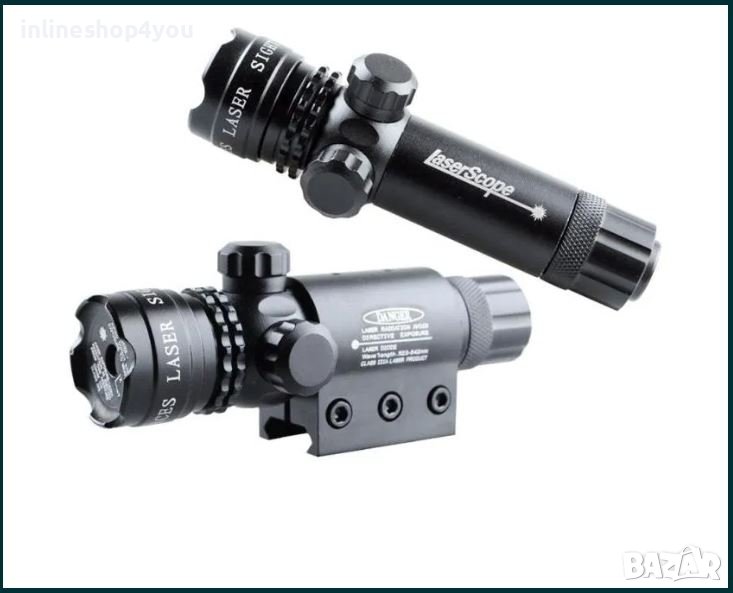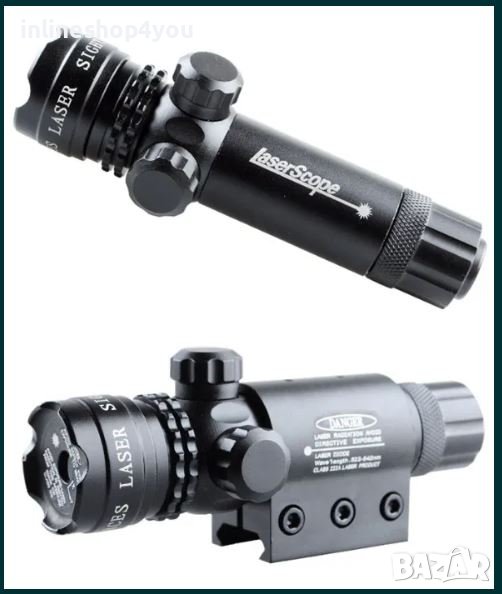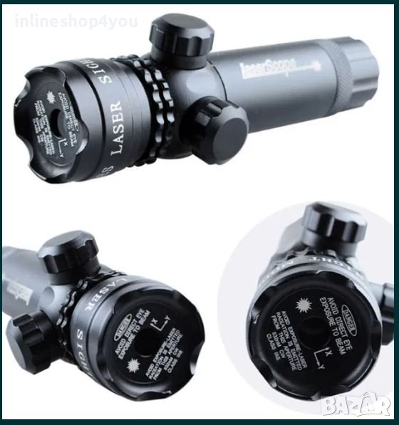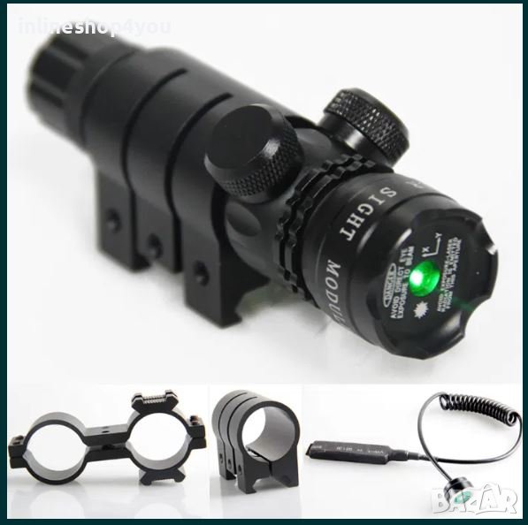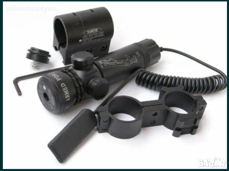 Лазерен мерник с всичко необходимо за прикрепване към оръжие, мерника е подходящ за поставяне най вече върху огнестрелна пушка.