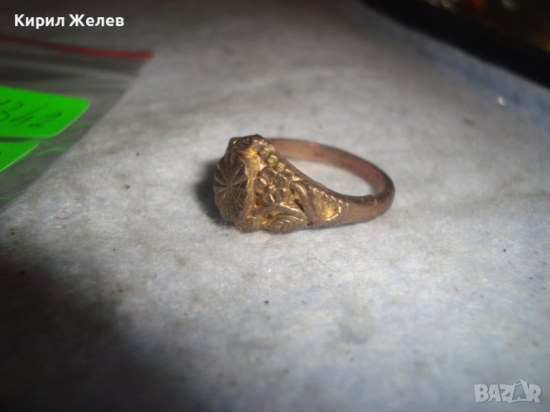 СТАРИНЕН МЕДЕН с ПОЗЛАТА ФЛОРАЛНО ОРНАМЕНТИРАН РЕТРО ПРЪСТЕН МАЙСТОРСКИ 27342