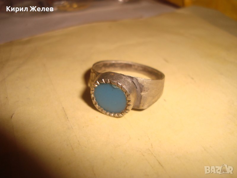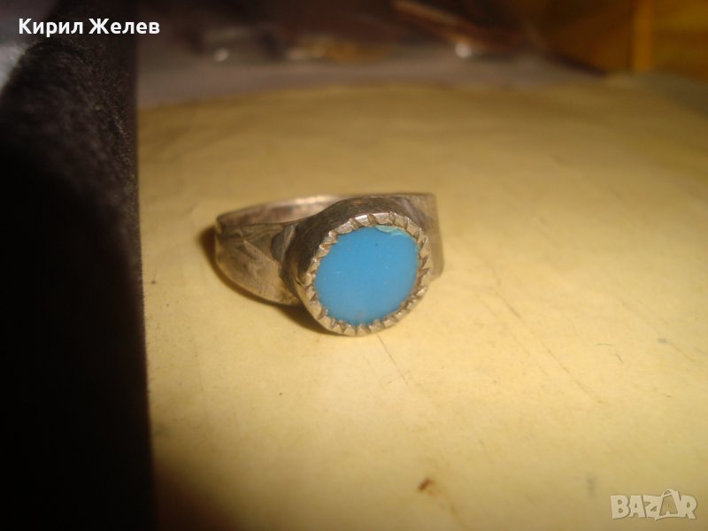 ВЪЗРОЖДЕНСКИ САЧАНЕН МАЙСТОРСКИ ПРЪСТЕН с ШЛИФОВАН ЕСТЕСТВЕН ТЮРКОАЗ РЪЧНА ИЗРАБОТКА 18-19 ВЕК 27805