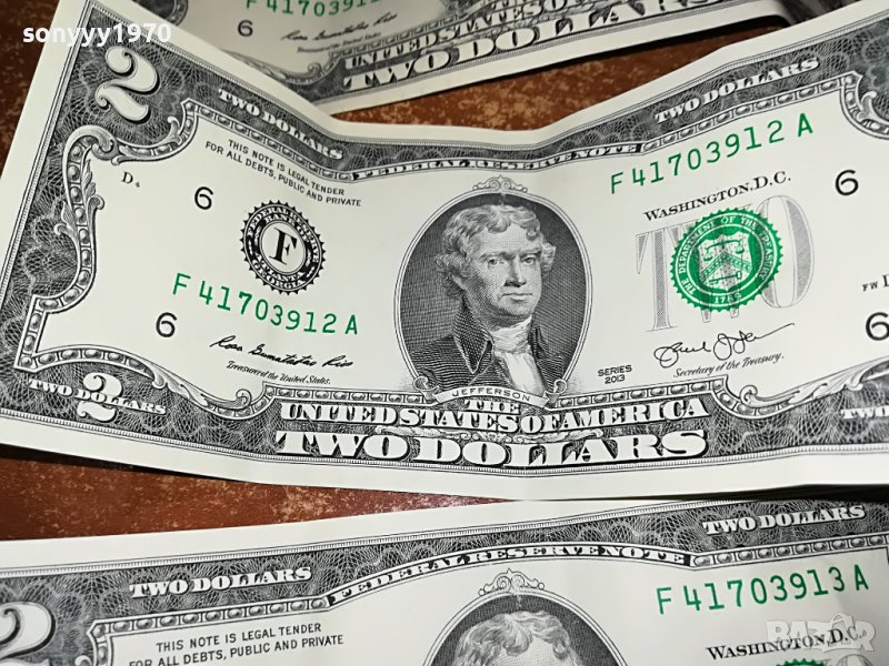 ДОЛАРИ 3 БАНКНОТИ ПО 2 ДОЛАРА 1605221143 → Обява 36775390