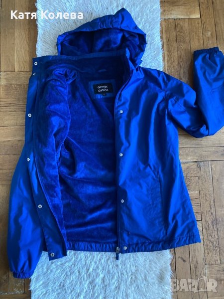 Здравейте, продавам синьо яке. Непромокваемо, с пух отвътре. Обличано веднъж за разходка в планината. Отговаря на размер М. Дължина 62см. Гръдна обиколка 100см.