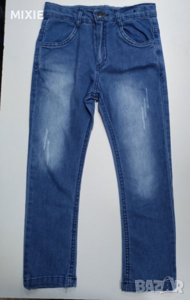 Нов детски комплект от блузка с апликация на кораб и дънки, тънък деним и корегираща се талия. Размери - 5 г., 6 г., 7 г., 8 г.