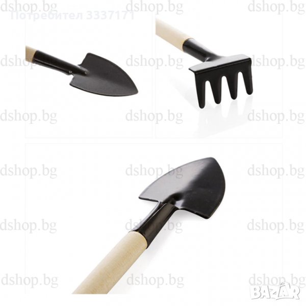 Комплект мини градински инструменти за градинарство с дървена дръжка.