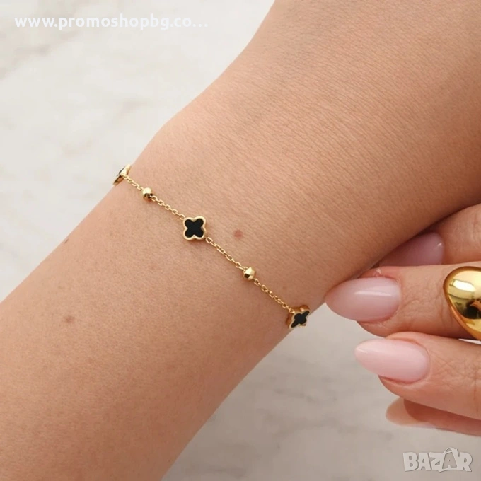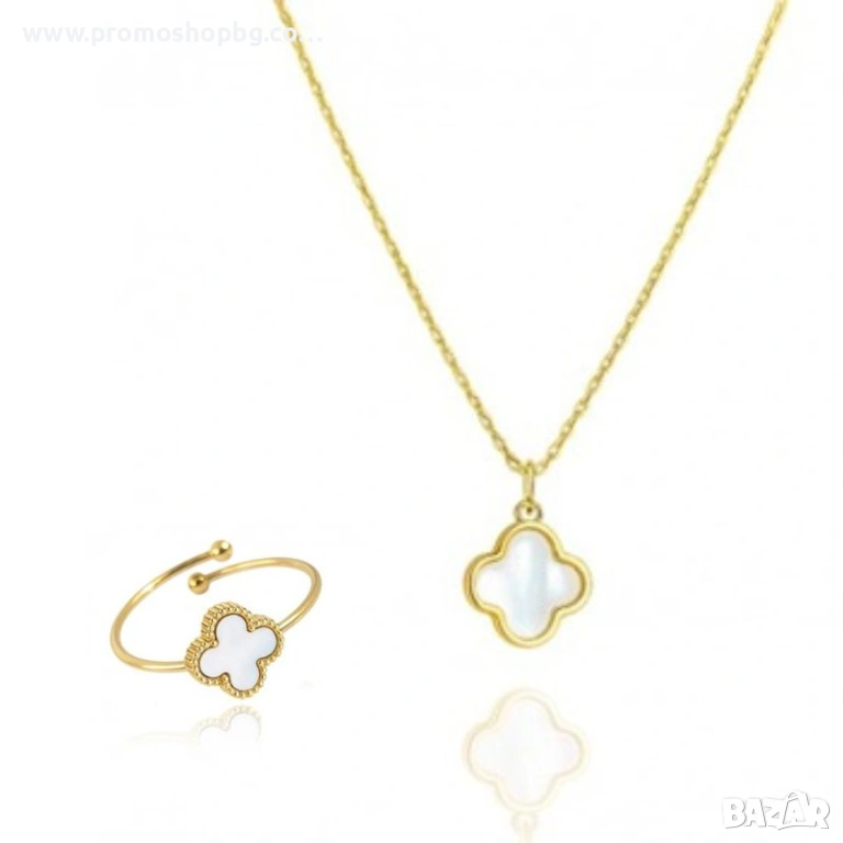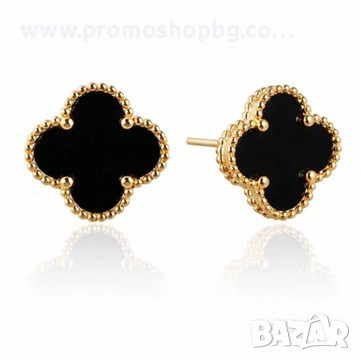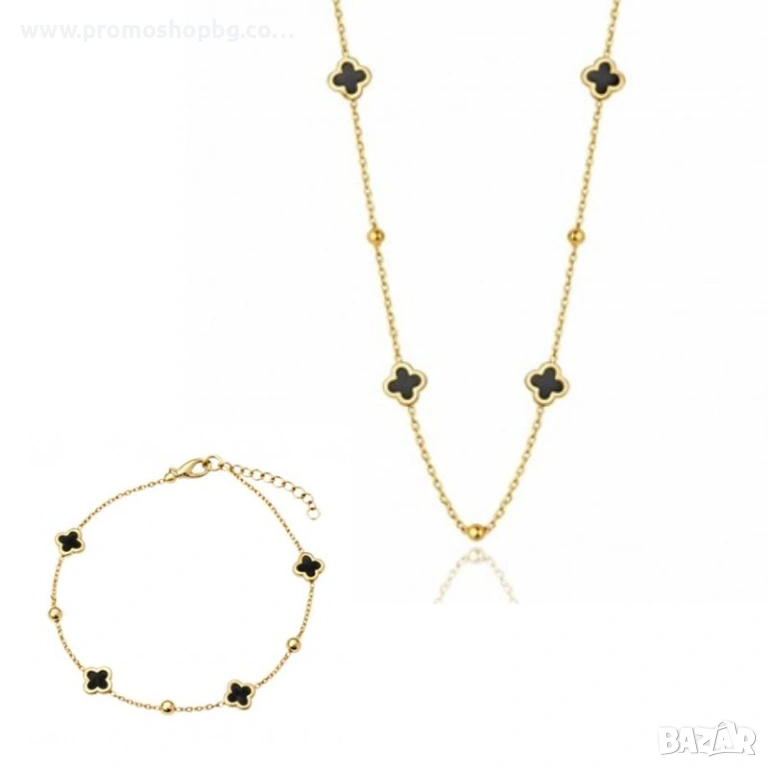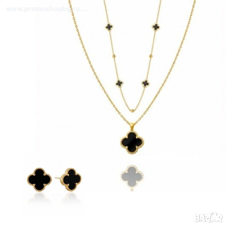 Комплект колие + обеци с черна детелина, стомана с 14-карата златно покритие, различни видове