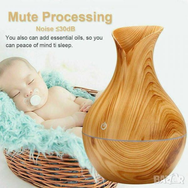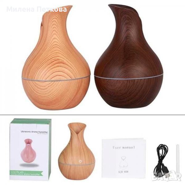 Арома дифузерът е абсолютно безшумен при работа. Предлага се в две красиви разцветки с дървесни мотиви и има капацитет на резервоара 150ml. Има различни режими на работа, като можете да включвате/изключвате изпарението на течността, както и да включвате/изключвате лед осветлението само с едно докосване на тъч бутон. Перфектен избор за вашият дом, офис или работно място. Помага за лек сън и освободено дишане и има благотворен ефект при суха кашлица, възпаление на синусите, суха кожа и пречистване на въздуха. Успокоява и подобрява настроението. ЧУДЕСЕН И ПРАКТИЧЕН ПОДАРЪК!