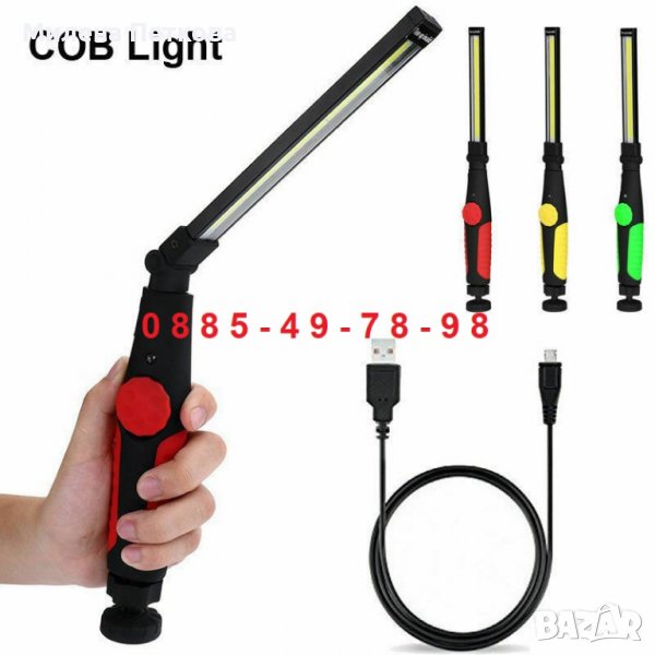 МУЛТИФУНКЦИОНАЛНА СУПЕР СИЛНА COB ЛЕД работна лампа с АКУМУЛАТОРНА БАТЕРИЯ, СИЛЕН МАГНИТ за залепване на метални повърхности, сгъваемо ЧУПЕЩО СЕ РАМО и ВЪРТЯЩА СЕ НА 360 градуса основа. Работната лампа разполага с УДОБНА ДРЪЖКА, както и с плавно РЕГУЛИРАНЕ НА СВЕТЛИНАТА от 0 - 100 процента. Осветителният панел се състои от 25 МОЩНИ COB LED осветителни диоди, които са най-съвременните към момента, характеризиращи се с голяма яркост, ниска консумация и дълъг 100 000 часа живот! Лампата има голяма вградена акумулаторна батерия 3000mAh която стига за до 12ч работа. Зарежда се посредством приложения USB кабел.