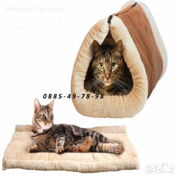 2в1 Топла постелка за коте самозатоплящо се легло и къща за котка куче