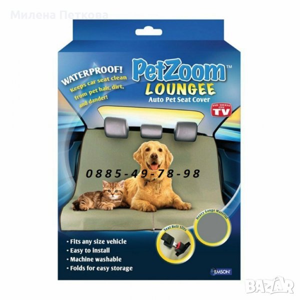 Тази полезна постелка слага край на досадното и уморително чистене на косми и мръсотия след всяка разходка с колата с домашния ни любимец! Pet Zoom Loungee защитава автомобилните седалки от косми, мръсотия, кал, драскотини от нокти и всякакви щети по тапицерията на автомобила. Постелката е изработена от водоустойчив, здрав износоустойчив материал и обхваща цялата седалка. ЕСТЕСТВЕНО МОЖЕ ДА СЕ ПОЛЗВА И ВЪРХУ ДИВАНА ВКЪЩИ.
