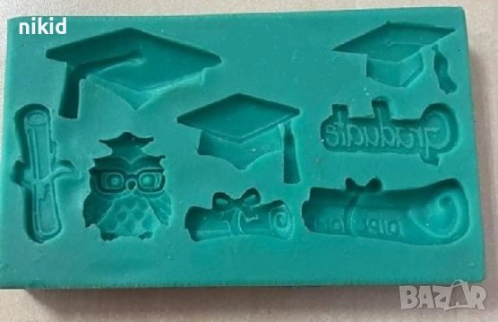 Диплома Дипломиране бухал завършване Тога силиконов молд декор украса торта фондан мъфини гипс пита → Обява 36788002