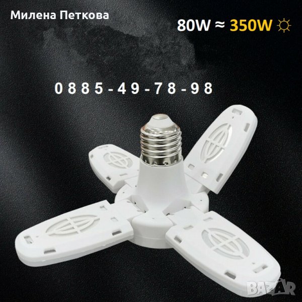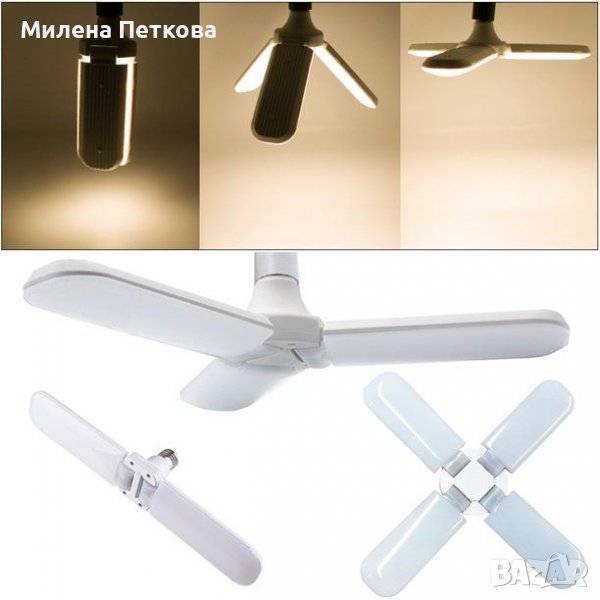 Ярка сгъваема X4 LED крушка 80W лампа хеликоптерна перка ЛЕД цокъл E27