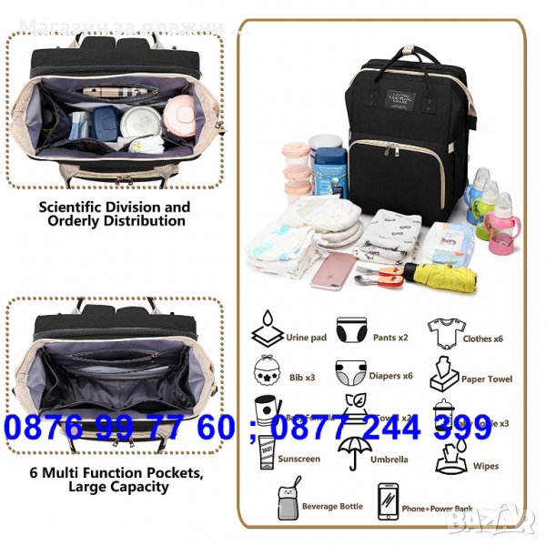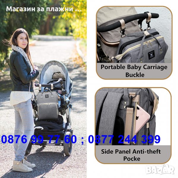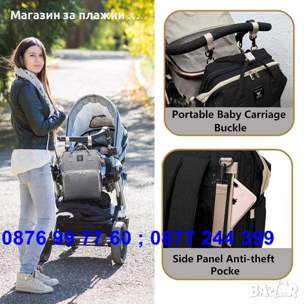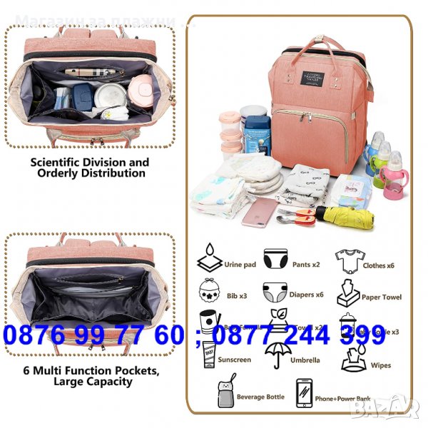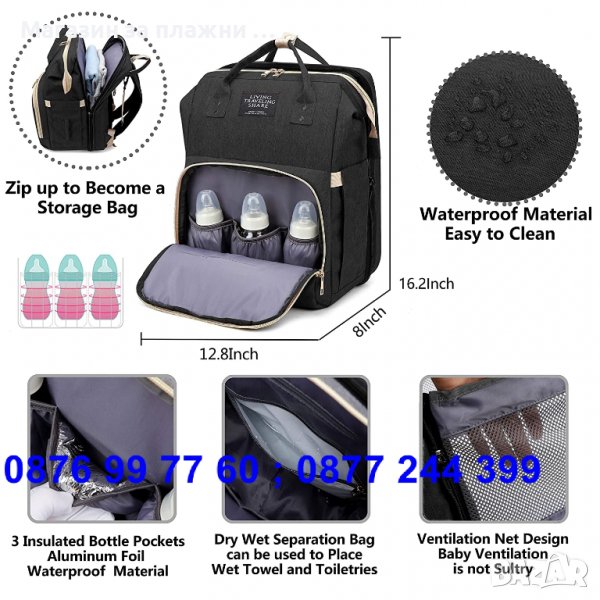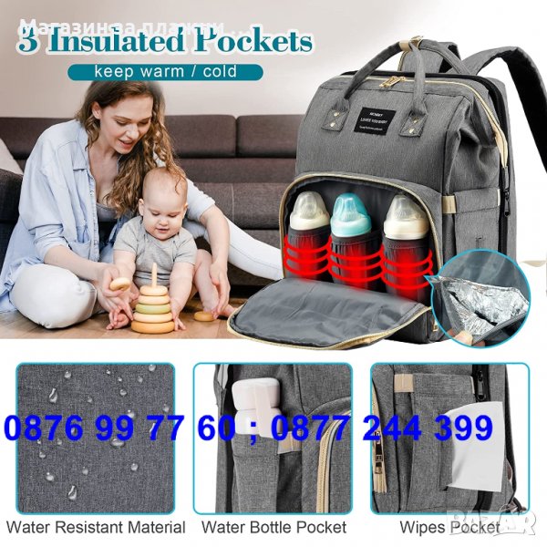 Умното подреждане на отделенията вътре ви позволява да поставите два пъти повече неща в тази чанта, отколкото в обикновените бебешки чанти. Ще имате всичко, което бебето ви може да се наложи, докато сте навън.