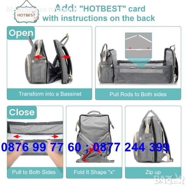Просто разширете бебешката чанта и тя автоматично ще се сглоби в преносимо бебешко легло. Той ще ви осигури безопасно и хигиенично пространство, което ви позволява да сменяте пелените по всяко време и на всяко място.