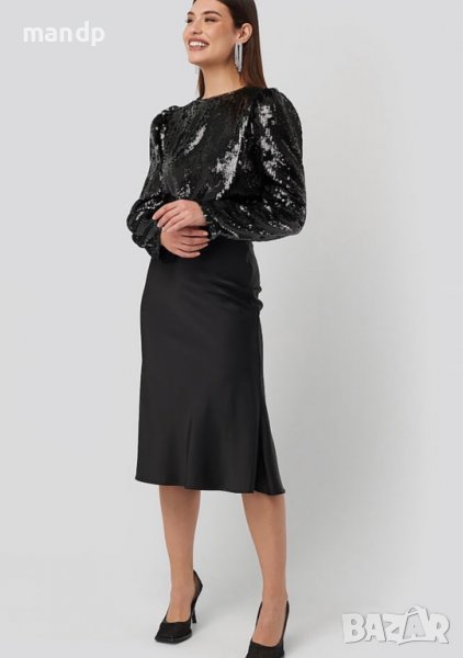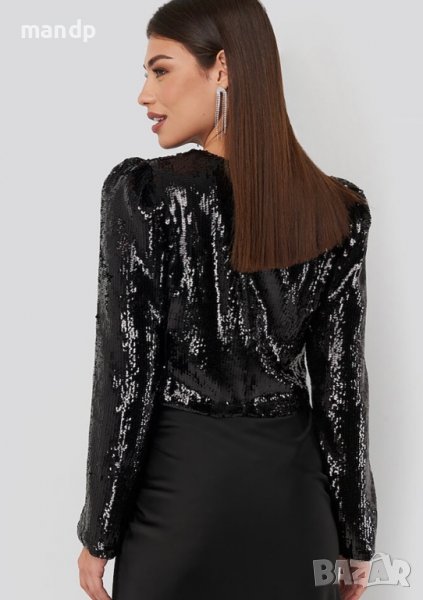 Елегантна блуза с пайети и подплата. Ръкавите са леко бухнали. Обличана веднъж за повод, като нова е. Без забележка!