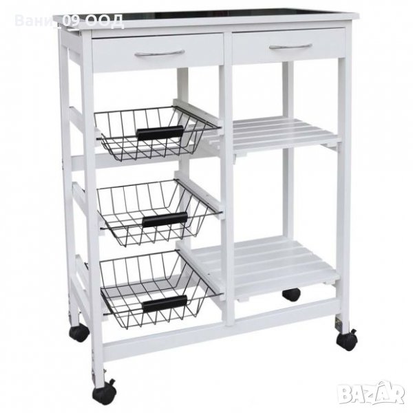 Двойна сервизна колипка с 2 рафта, 3 метални кошници, 2 чекмеджета и плот.