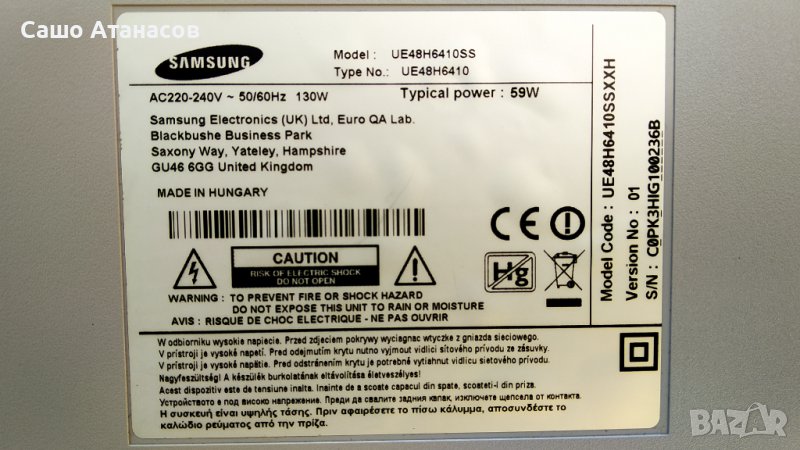 SAMSUNG UE48H6410SS със счупена матрица ,BN44-00709A ,BN41-02156A ,BN41-02110A ,WIDT30Q ,WIBT40A