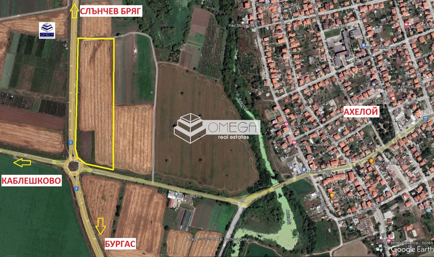 Урегулиран поземлен имот с изключително добра локация. Парцелът е с 400м лице на главен път между Бургас и Слънчев бряг и 100м лице на кръговото движение в посока Ахелой. Имотът е ъглов и има обща площ от 48 дка, което го прави подходящ за различни инвестиционни възможности.