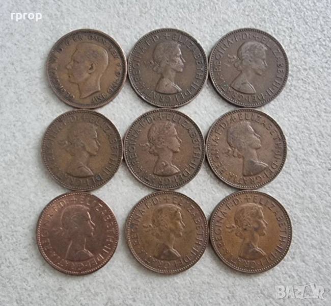 ½ пени .Англия. Половин пени. 9 бройки.Различни години. → Обява 36797308