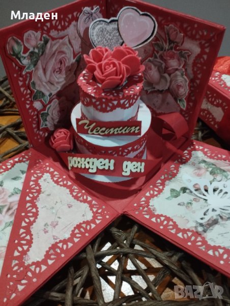 Експлодираща кутийка. Подходяща за всеки повод. Размери: 10×10см. Могат да се изработят и в друг дизайн и повод.Кутийката е правена по поръчка.