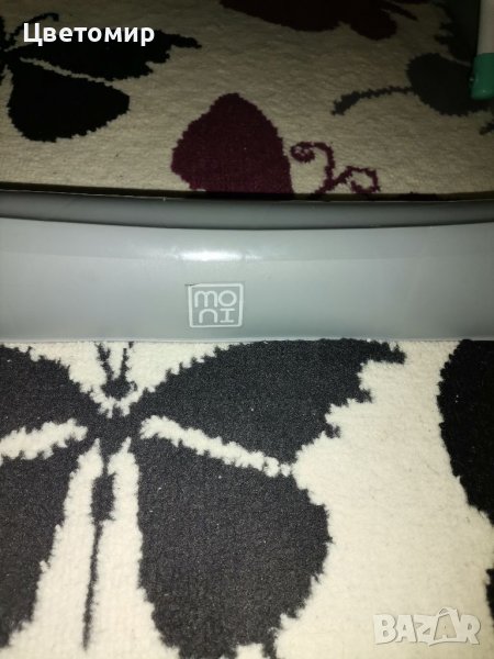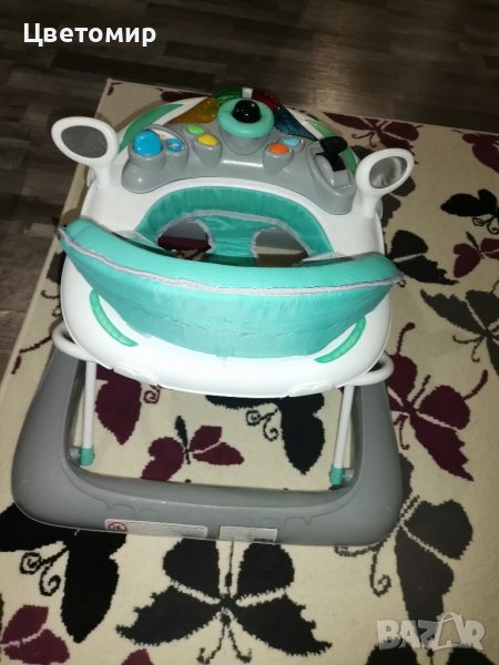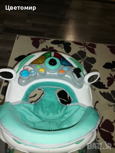 Детска проходилка Мони с 3 нива на седалката, 360градуса завъртане на колелата, мека седалка, музикална част, светлини, единствената забележка е цифрата 3 на хартиената част