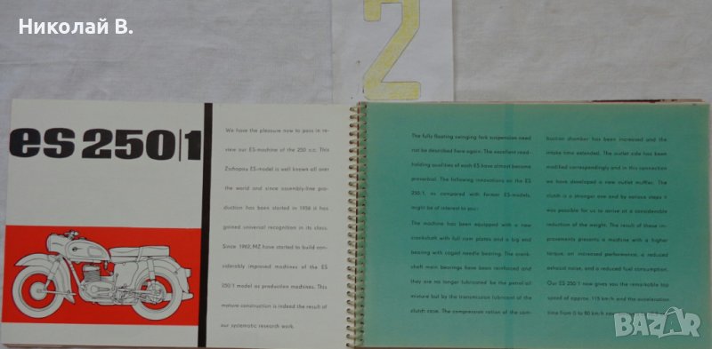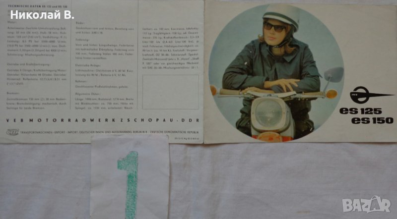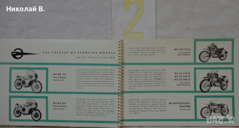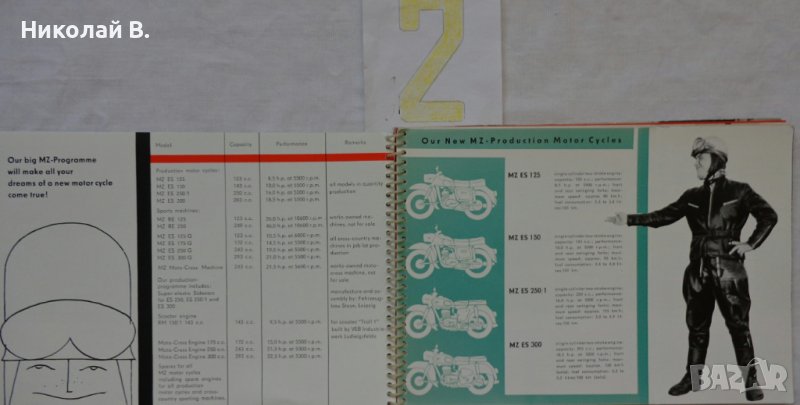 Номер 1 MZ ES125, ES150, формат А3 1964 годин . Цена 99 лв.