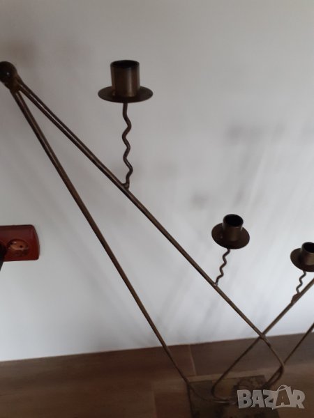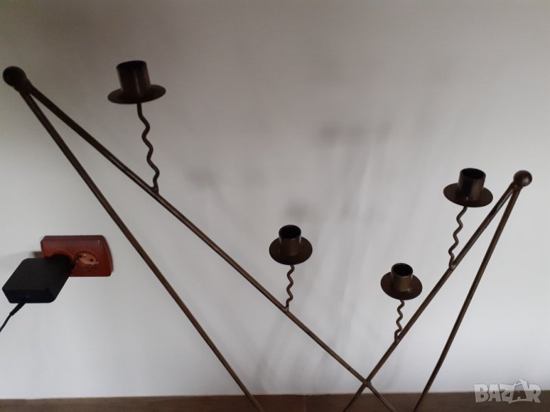 Продава масивен висок железен свещник цвят (старо злато) със 4 гнезда за свещи. Бароков стил . Идеален за декорация на механа , заведения , градина , битов кът , интериор във вашия дом офис и други.