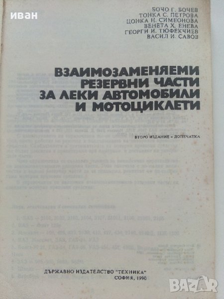 Взаимозаменяеми резервни части за леки автомобили и мотоциклети - 1990г.