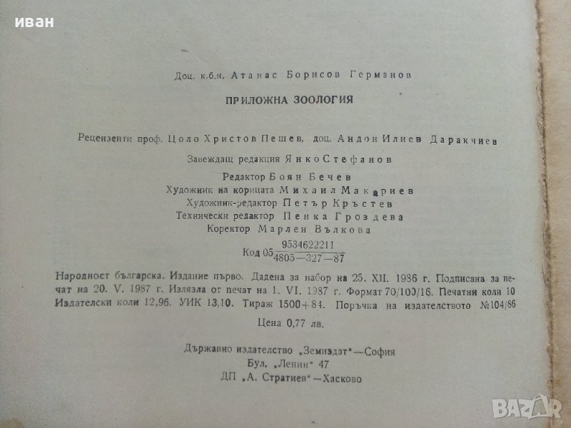 Приложна Зоология - А.Германов - 1987г. → Обява 36805759