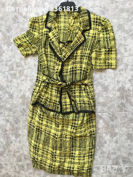 Продавам рокля от естествена коприна 100 процента. Има подплата . Висококачествена коприна .Моделът е рокля със сако . Размер Л