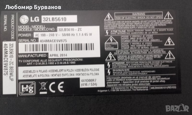 LD44B EAX 65361503 за LG32LB5610 → Обява 36807713