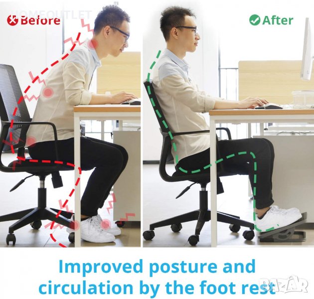 гръбначния стълб при седене на бюро като държи краката и стъпалата в издигнато