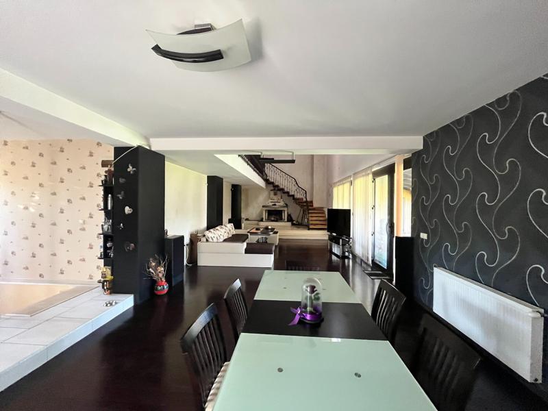 Агенция Столица инвест ЕКСКЛУЗИВНО предлага на Вашето внимание луксозна, новопостроена, монолитна къща, с РЗП 426 кв.м. и дворно място с площ 1850 кв.м. , на асфалтов път в гр. Мартен. Разпределението е както следва постройка, навес, лятна кухня, от която се влиза в дневна с кухня и камина, която е много просторна с височината на вторият етаж; спалня със санитарен възел; кухня; спалня с баня, тоалетна и килер; втори етаж спалня с баня и тоалетна; дрешник, който може да се преустрои в стая; релакс зона; стая с тераса; подпокривно пространство. Достъпът до вторият етаж се осигурява от вътрешни стълби, изградени с висококачествени материали, включително дъбов материал, който на практика е вечен, а парапетът е от висококачествено изработено ковано желязо. Отоплението се извършва с комбиниран котел 50кW, който е с пелети, дърва и