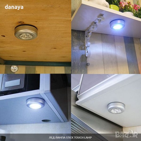 Лепяща лампа за шкаф. Малка самозалепваща луничка, работеща на батерии. Лесна за инсталиране лампа Stick touch lamp!