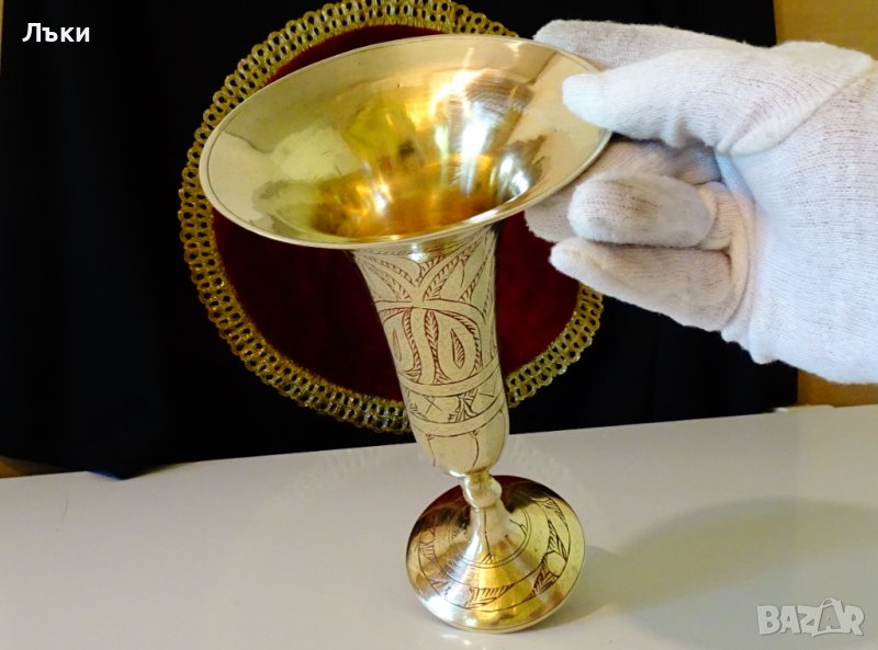 сложна изработка с извивка на масивната основа и широка гърловина,бокала е предназначен