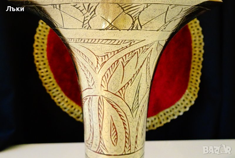 бронз със златен блясък.Декориран с разкошни релефни орнаменти,подчертани с прецизен