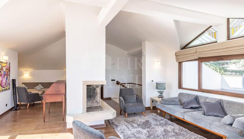 - девет стаи, две от които са изключително просторни всекидневни с три къта с дивани от сатенено кадифе, озвучителни системи и две камини;