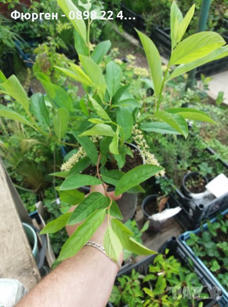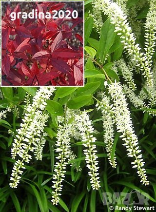 Широколистен храст с височина около 1,5 м със специфична компактна корона.Листата са тъмнозелени през лятото и лилаво-червени през есента, продълговато-елипсовидни, назъбени, стеснени към края, дълги до 10 см. Цветовете са много ароматни, бяло-кремави, събрани в гъсти гроздове.Цъфти през юли.