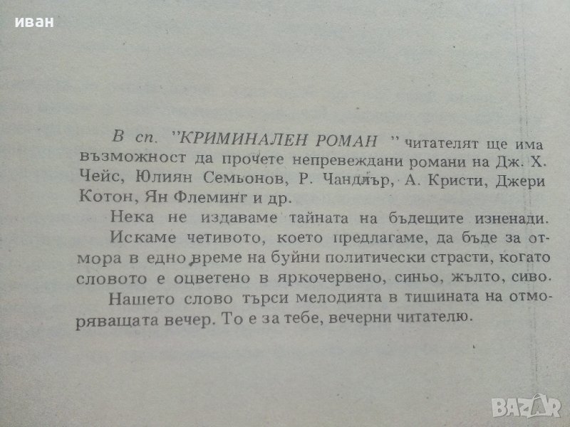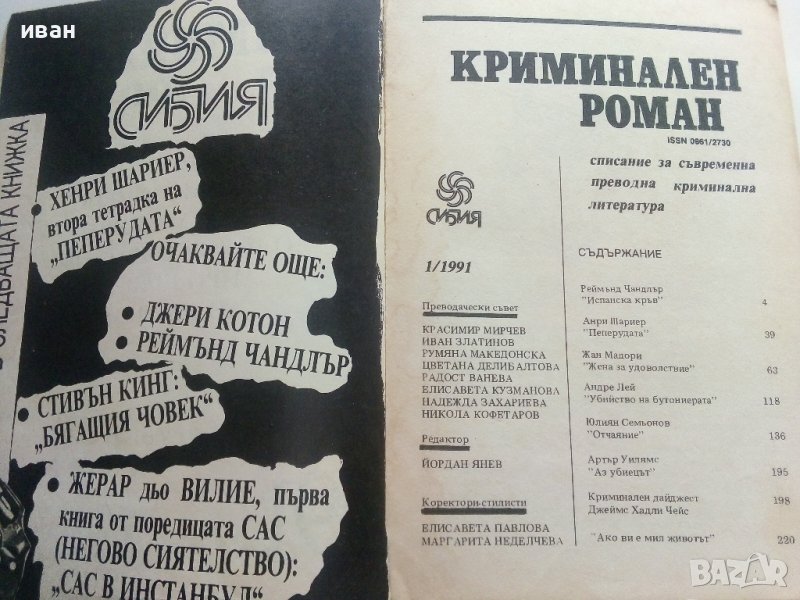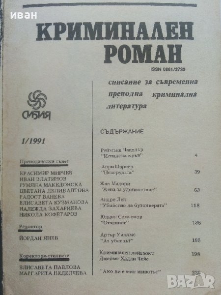 Списание "Криминален роман" - 1991г. брой 1. → Обява 36816672