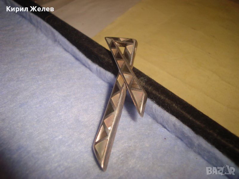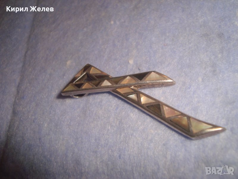 ДИЗАЙНЕРСКИ СЕДЕФЕН КРАСИВ СРЕБЪРЕН АРТ МЕДАЛЬОН СРЕБРО 925 с РЪЧНО ИНКРУСТИРАН СЕДЕФ 27212