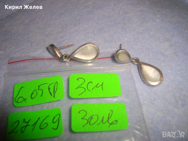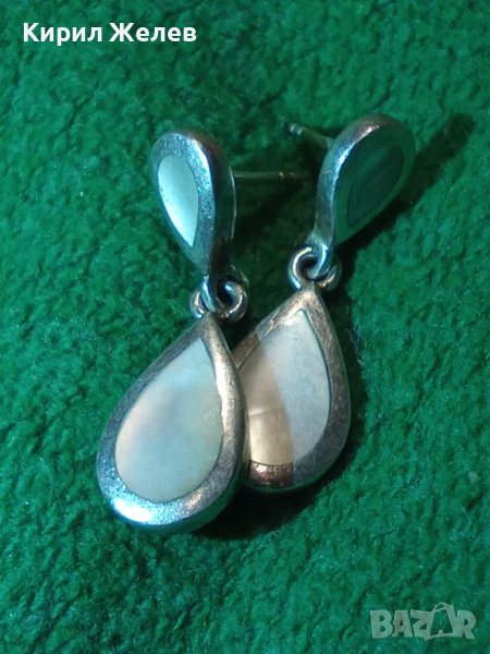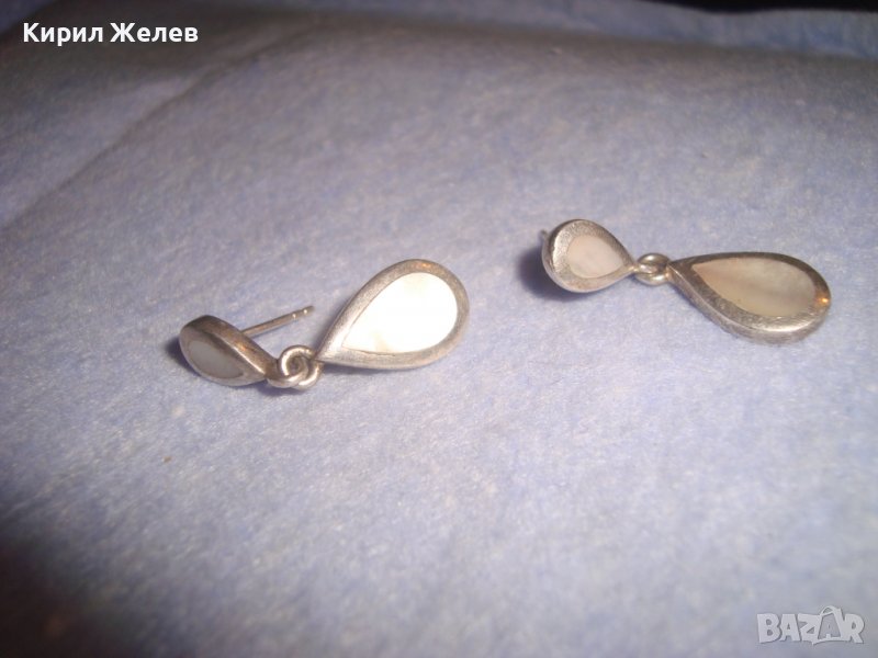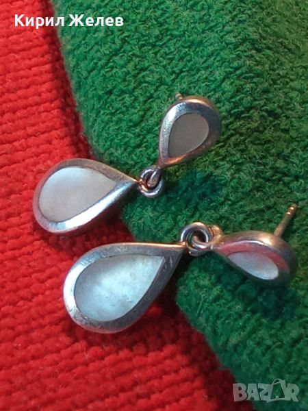 ВИНТИДЖ СРЕБЪРНИ СЕДЕФЕНИ АР НУВО ОБЕЦИ СРЕБРО 925 АНГЛИЯ РЪЧНА ЮВЕЛИРНА ИЗРАБОТКА 27169
