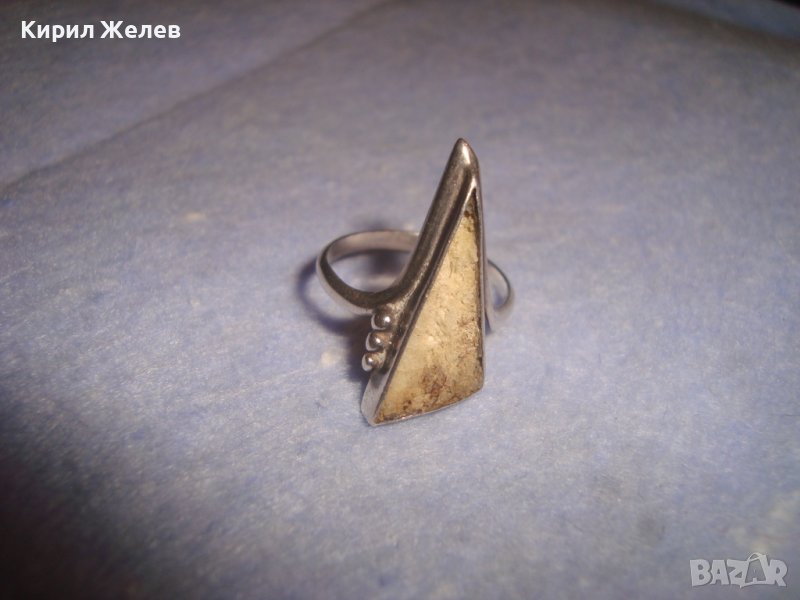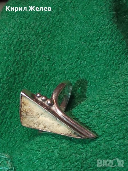 СТАР СРЕБЪРЕН АРТ ДЕКО СТИЛ ПРЪСТЕН СРЕБРО 925 с БЯЛА ЕМАЙЛ-ПАСТА МАЙСТОРСКА РАБОТА 27375
