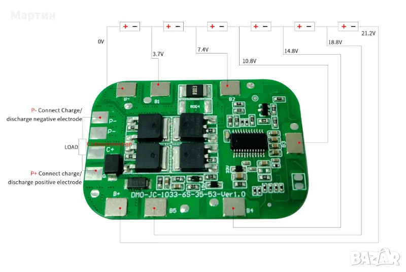 Защитна платка, балансна платка за балансно зареждане, Система за управление на батерията с балансиране на заряда.