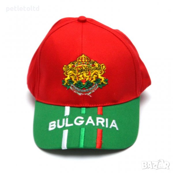 Шапка с козирка, с ГЕРБ на Р. България, с надпис Bulgaria и стилизирани ленти на козирката в цветовете на българския трикольор