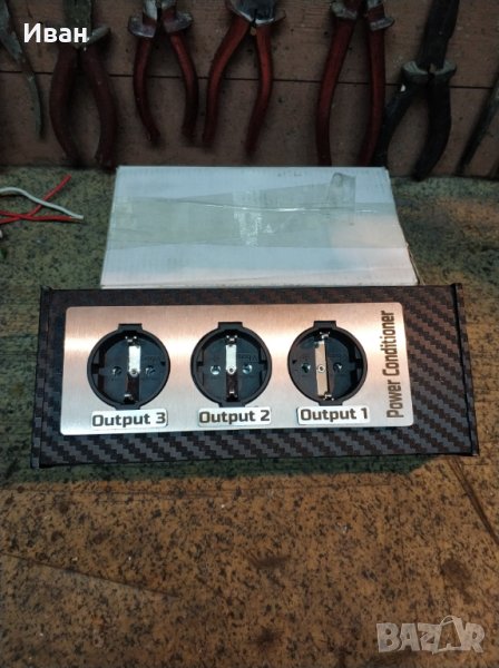 Висок клас разклонител,изработен от 2мм,6мм,10мм алуминий,използвани шука на фирмата furutech,viborg ,чиста червена мед с родиеви покритие,ек на същата фирма,червена мед с родиеви покритие,окабеляване с качествен посребрен или проводник от чиста мед..Захаранен с подходящ силов кабел разликата в звука е чуваема