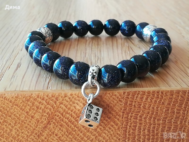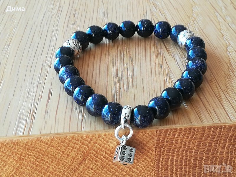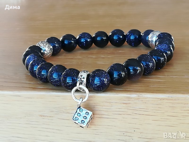 Дамска Гривна Стерлингово Сребро и 8 мм Камъни Синя Звездна Галактика /Син Пясъчен Авантюрин → Обява 36826950
