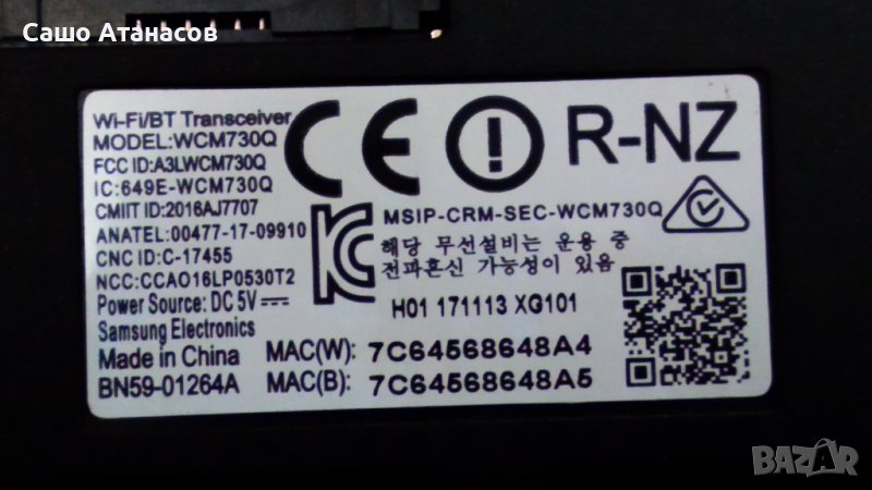 Wi-Fi/BT Transceiver : BN59-01264A / WCM730Q - 25лв.