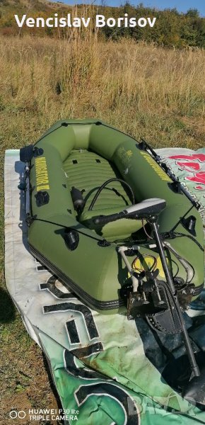 Продавам надуваема лодка Навигатор комплект с ел. мотор. Лодката е ползвана два сезона. Има ел. мотор motorcycle 30 lbs със скала за показване на заряда, клапани за налягането. Лодката има една единствена забележка, трябва да се подлепи борд лентата на 2-3 места нищо сложно и фрапиращо. Има си и транспортен сак, гребла и възглавница за седене. Също така, може да се добави и 100 амперов акумулатор, тогава цената ще е 850 лева.