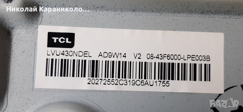 Продавам тв. THOMSON 43UD6306X1 за части по причина-счупена матрица/LVU430NDEL AD9W14/.Редовни съответно: